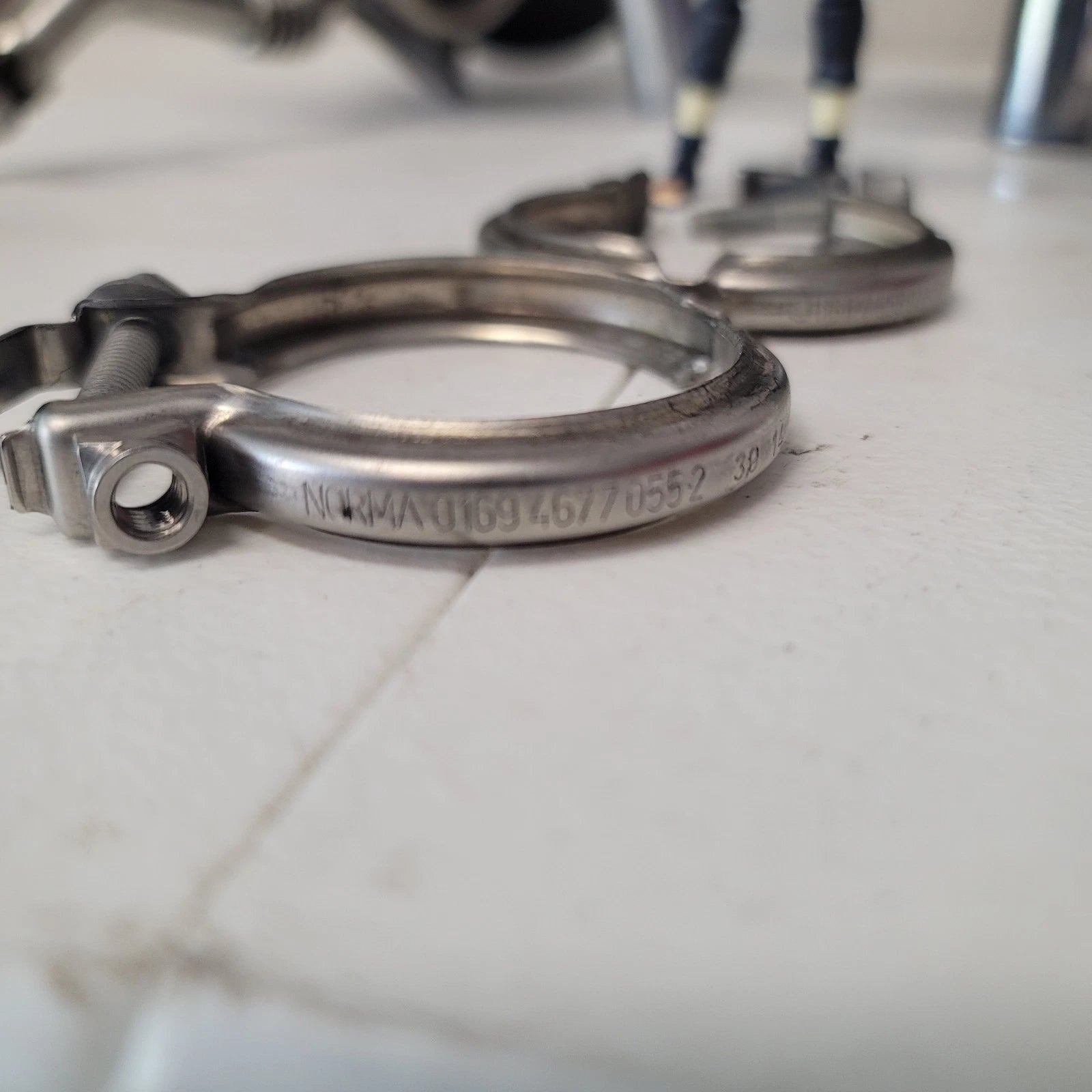 (2x) OEM BMW stainless vband clamps - compressor outlet--> hose (2x) OEM BMW stainless vband clamps - turbine inlet --> header (2x) OEM BMW stainless vband clamps - turbine outlet.--> downpipe