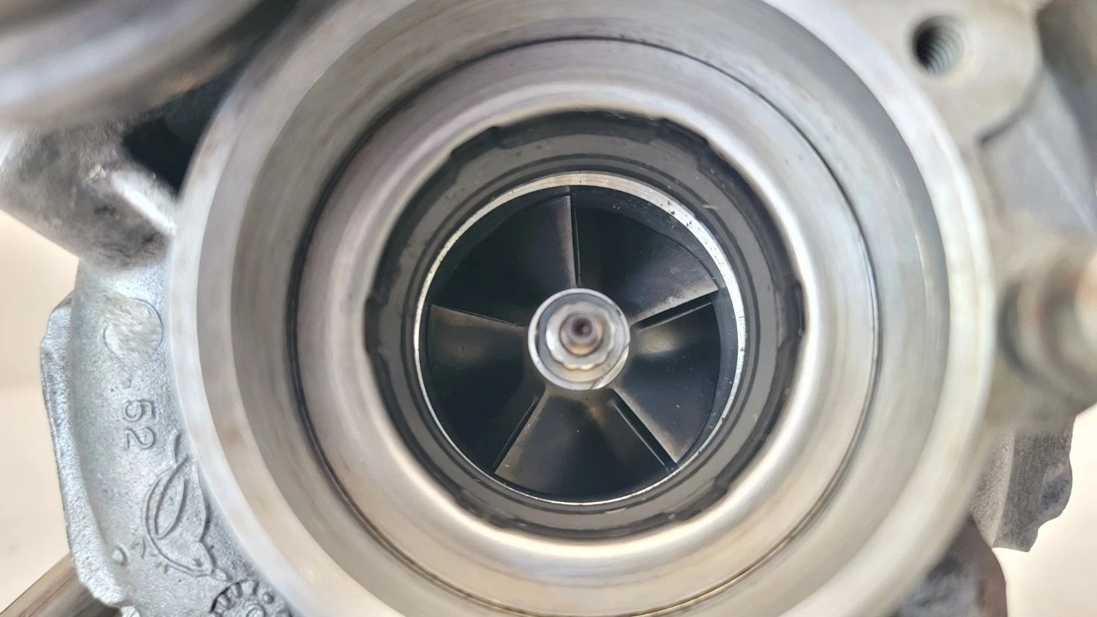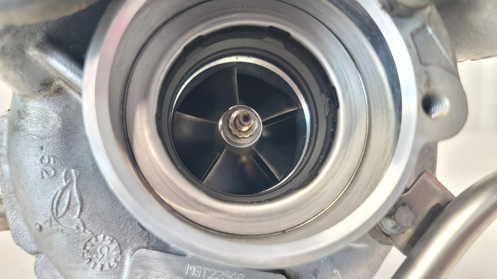 There is no in and out shaft play, and no contact with the housings be the compressor or turbine wheels. The blades spin freely.